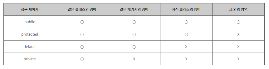 이러한 기능을 구현하기 위해 접근지정자 기능을 사용하면 된다.
